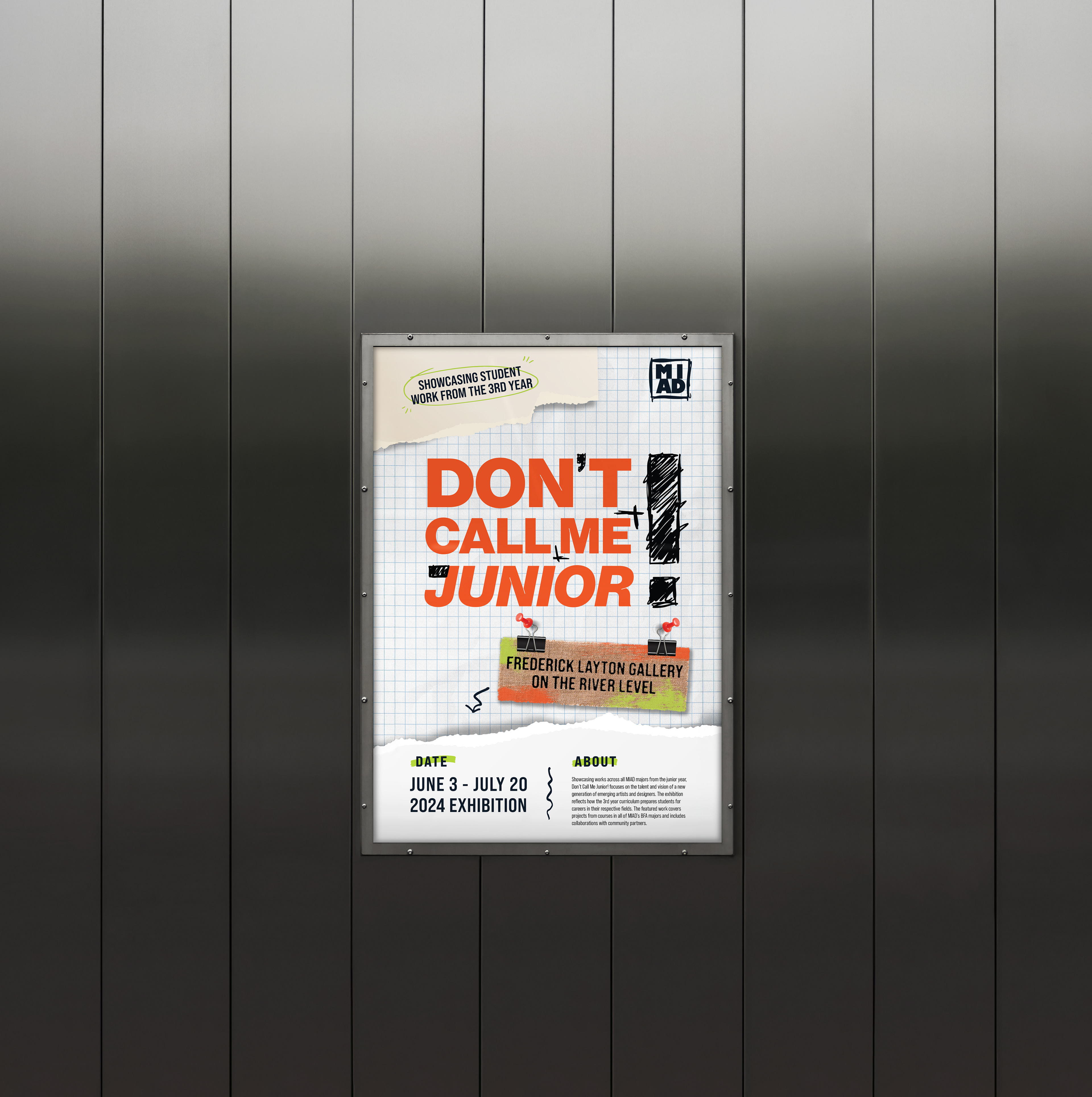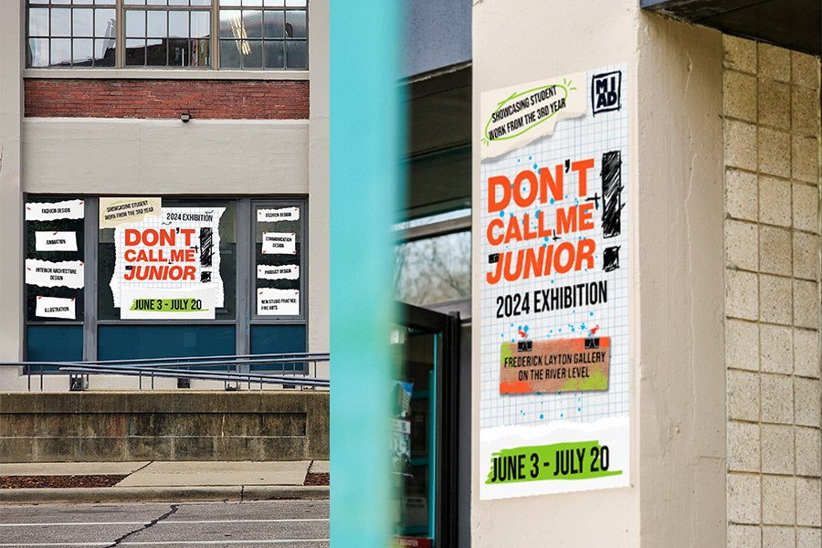 Don’t call me junior is an annual exhibition held by the Milwaukee Institute of Art & Design that highlights the works created by the current junior class. During the 2024 exhibition, a couple of our colleagues submitted concepts for the year’s identity against 14 designers.