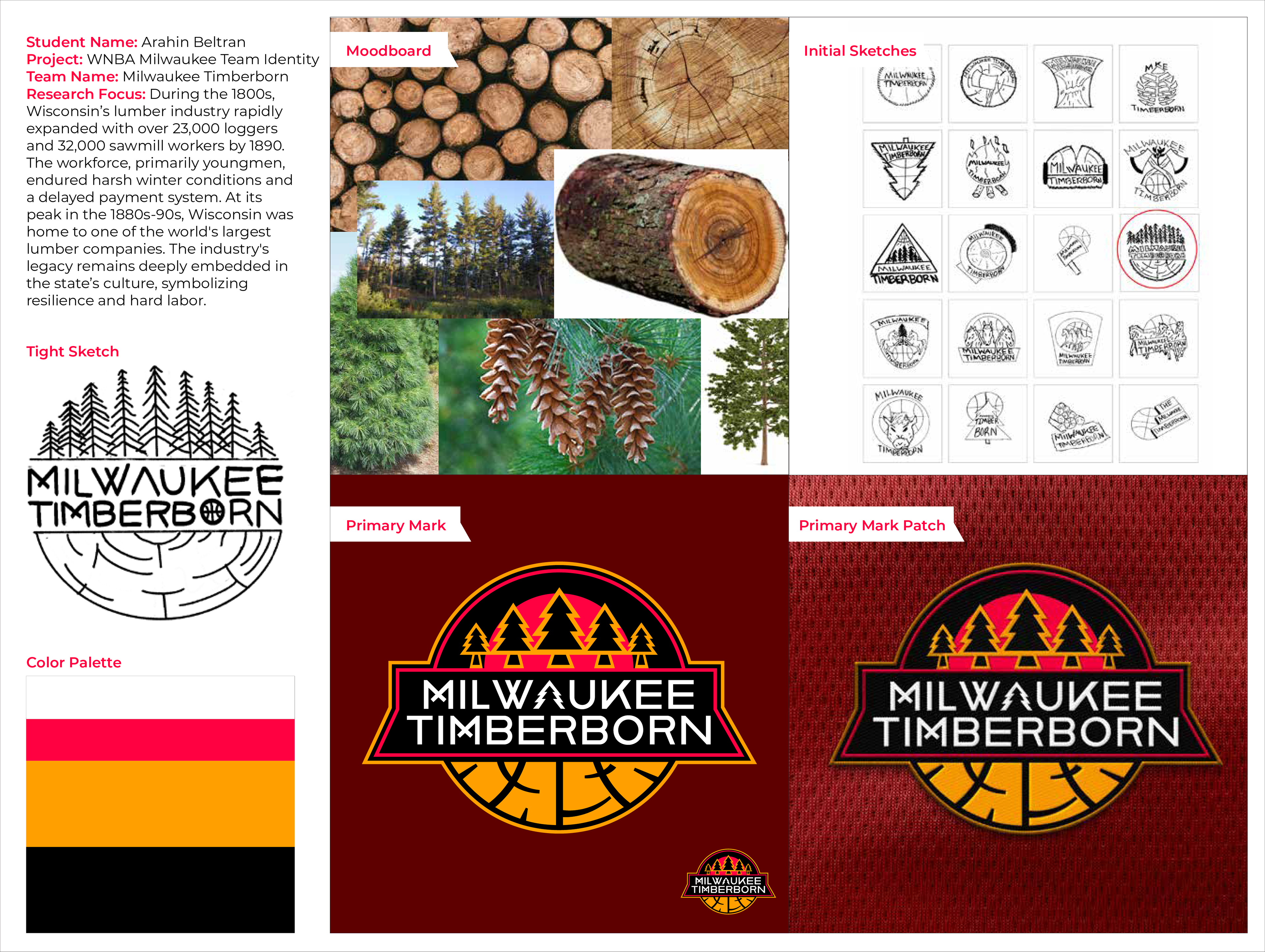 The task was to design a WNBA team based in Milwaukee, Wisconsin. This included creating the team’s main marks, additional supporting marks, and a design that fits the city. The work also involved designing the home, away and alternative jerseys, developing a line of team merchandise, and producing a hype video to introduce the new team and explain its story.